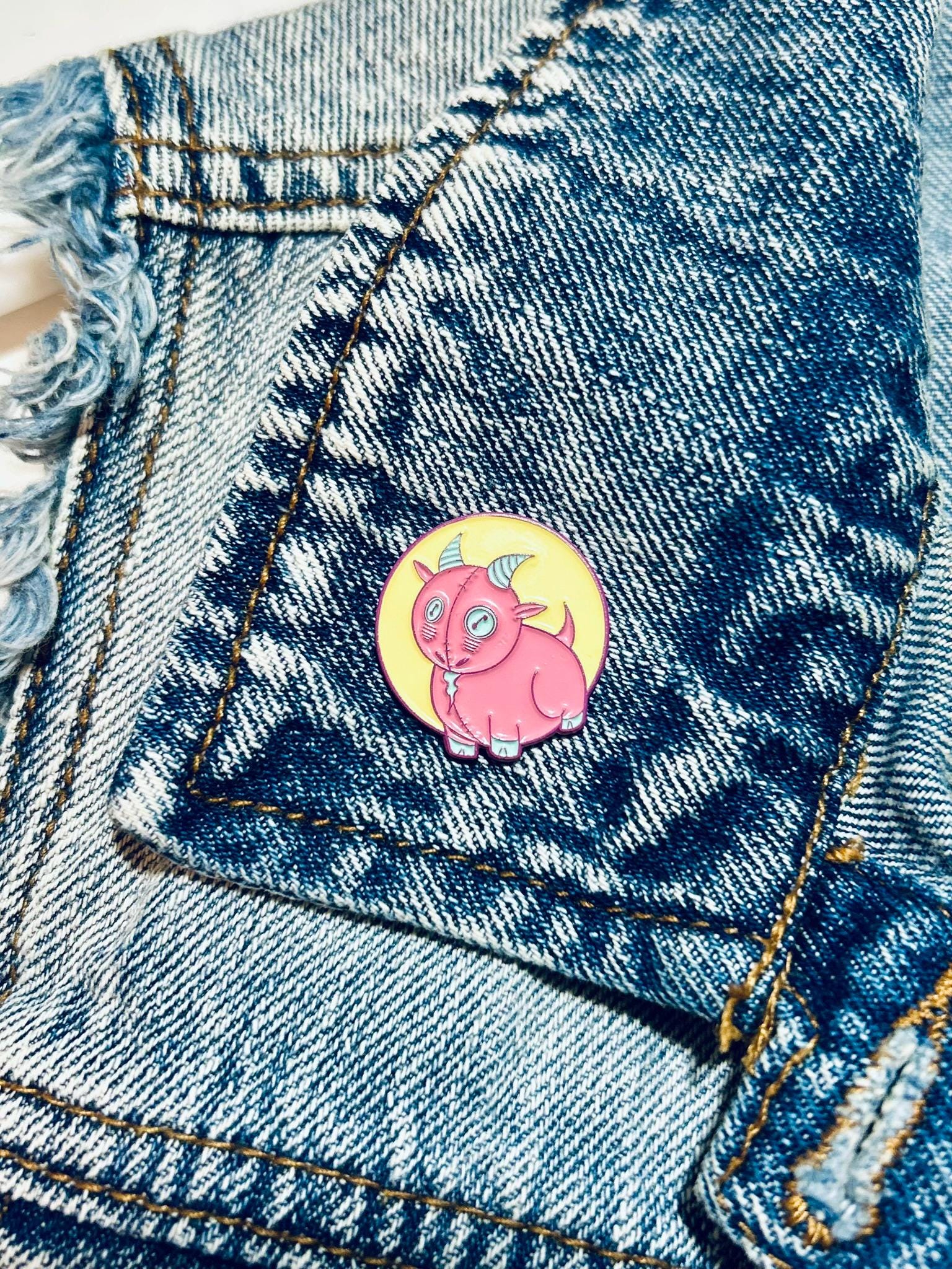 1" Soft Enamel Pin - Cute Pink Goat with Button eyes